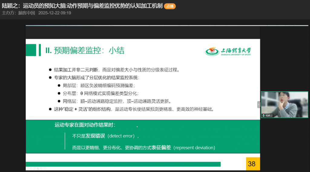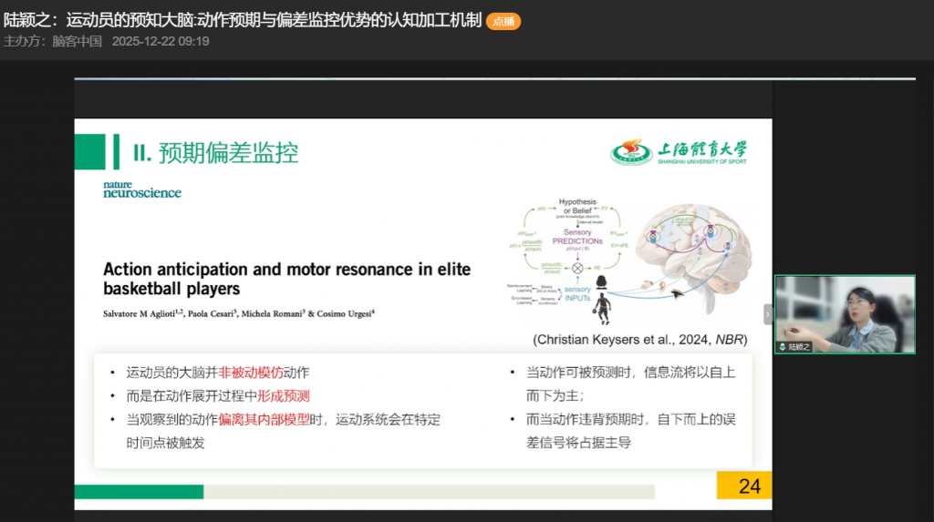 本次直播系统揭示了运动员动作预期优势的核心——内部模型的完善与偏差监控的精细化加工,为运动训练与认知科学研究给予了重要参考。