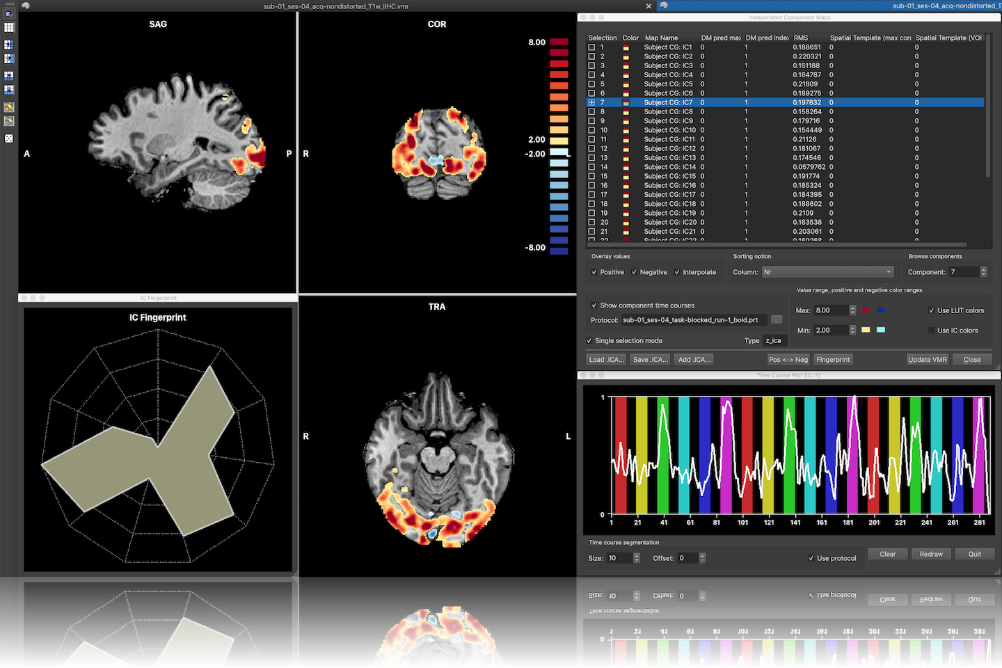 BrainVoyager 是一款功能强大的多种模态神经影像分析软件,支持数据管理与分析。是 fMRI、DTI、EEG 和 MEG 数据的多种模态分析工具。